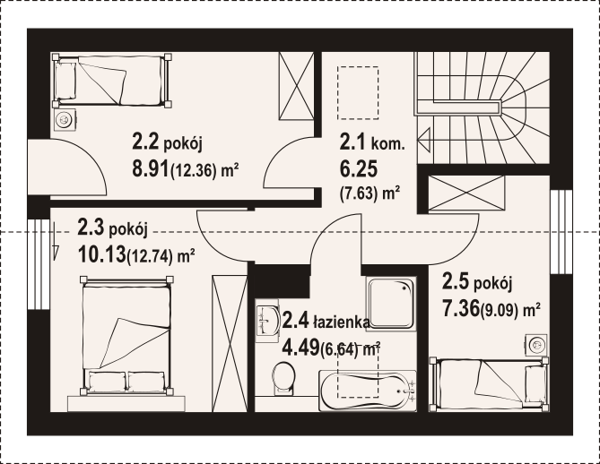 | 2.4 łazienka | 4,49 (6,64) m² |