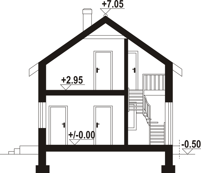 Projekt domu mieszkalnego parterowego, z poddaszem mieszkalnym.