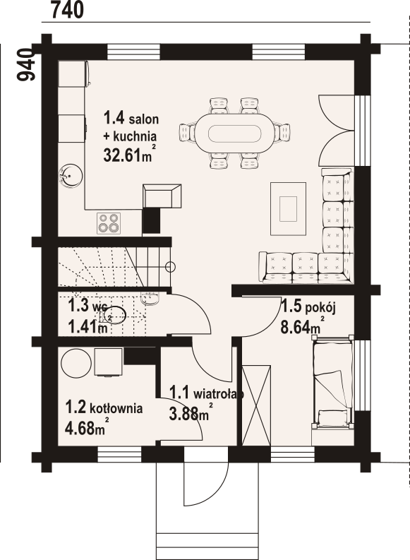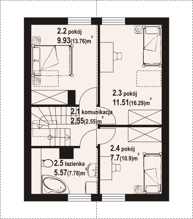 Projekt domu mieszkalnego parterowego, z poddaszem mieszkalnym.