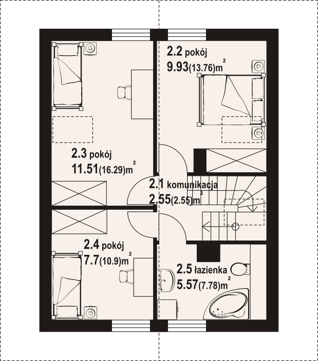 Projekt domu mieszkalnego parterowego, z poddaszem mieszkalnym.