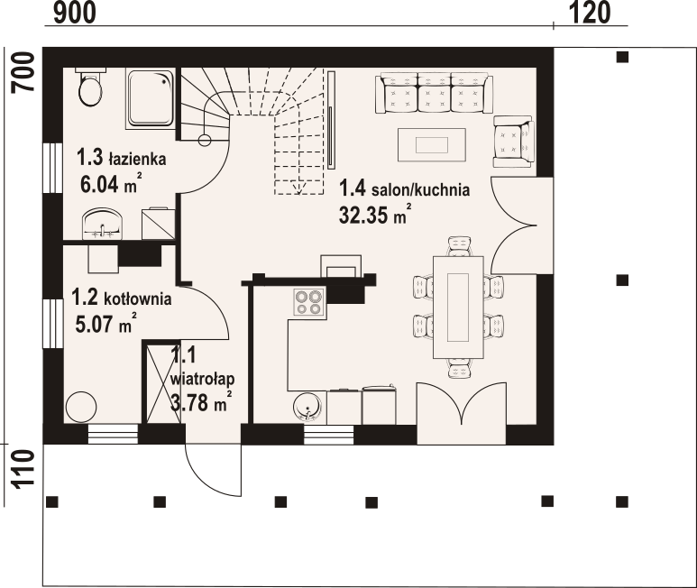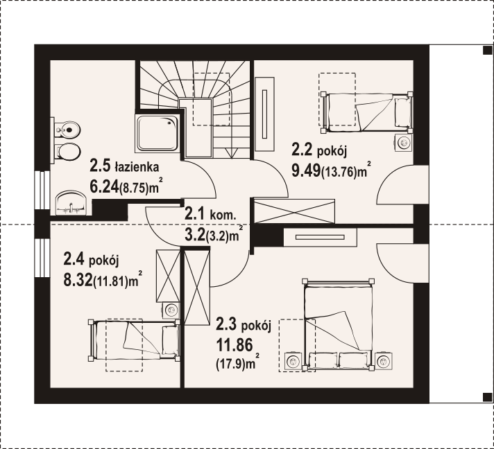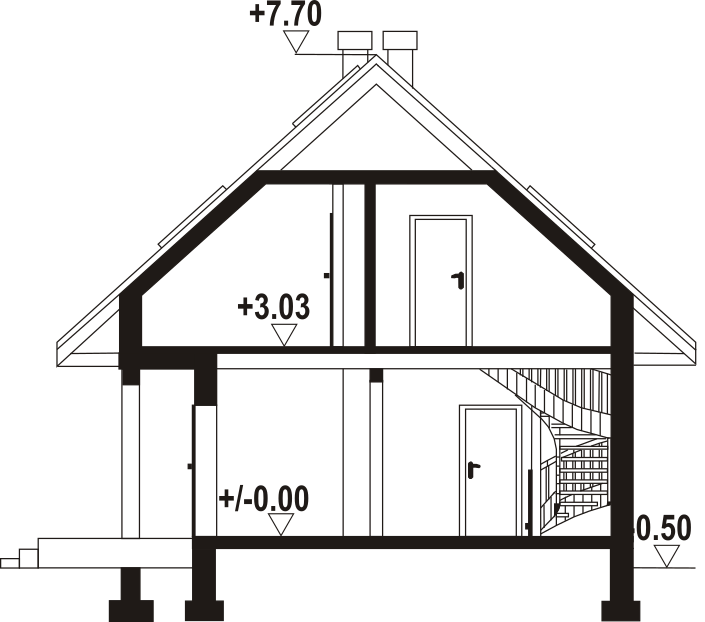 Projekt domu mieszkalnego parterowego, z poddaszem mieszkalnym.