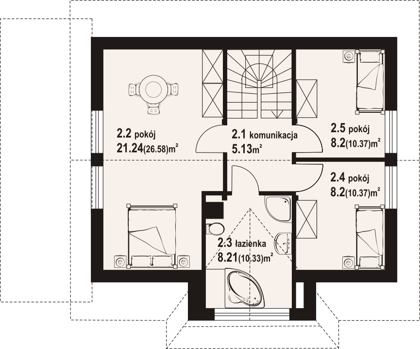 | 2.3 łazienka | 8,21 (10,33) m² |
